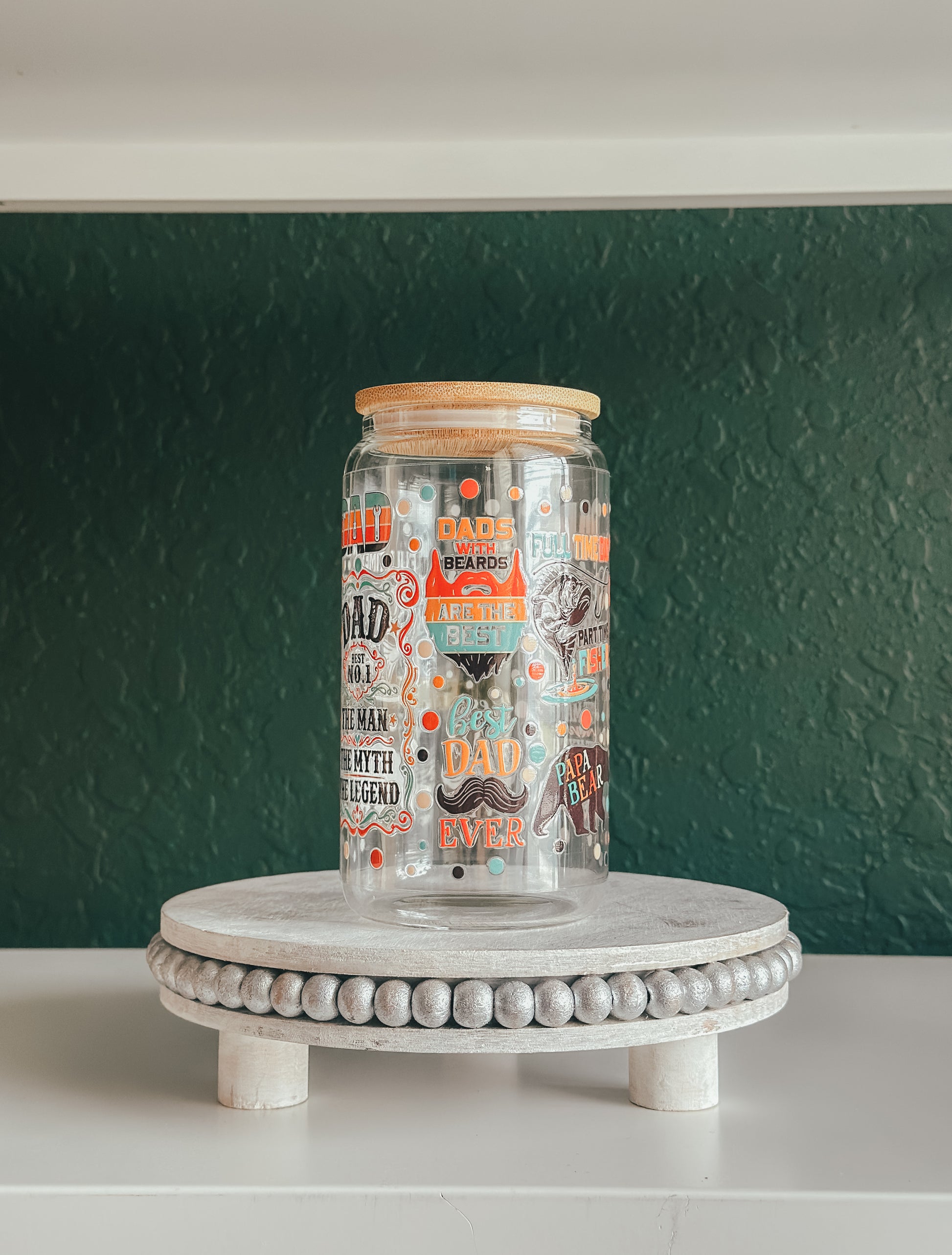 Introducing our charming 16oz Glass Cup with Bamboo Lid, featuring a cool papa bear cup with great relatable content ! Perfect for the eco-conscious drinker, this stylish and sustainable glass tumbler is designed to bring a touch of whimsy to your daily hydration routine.
