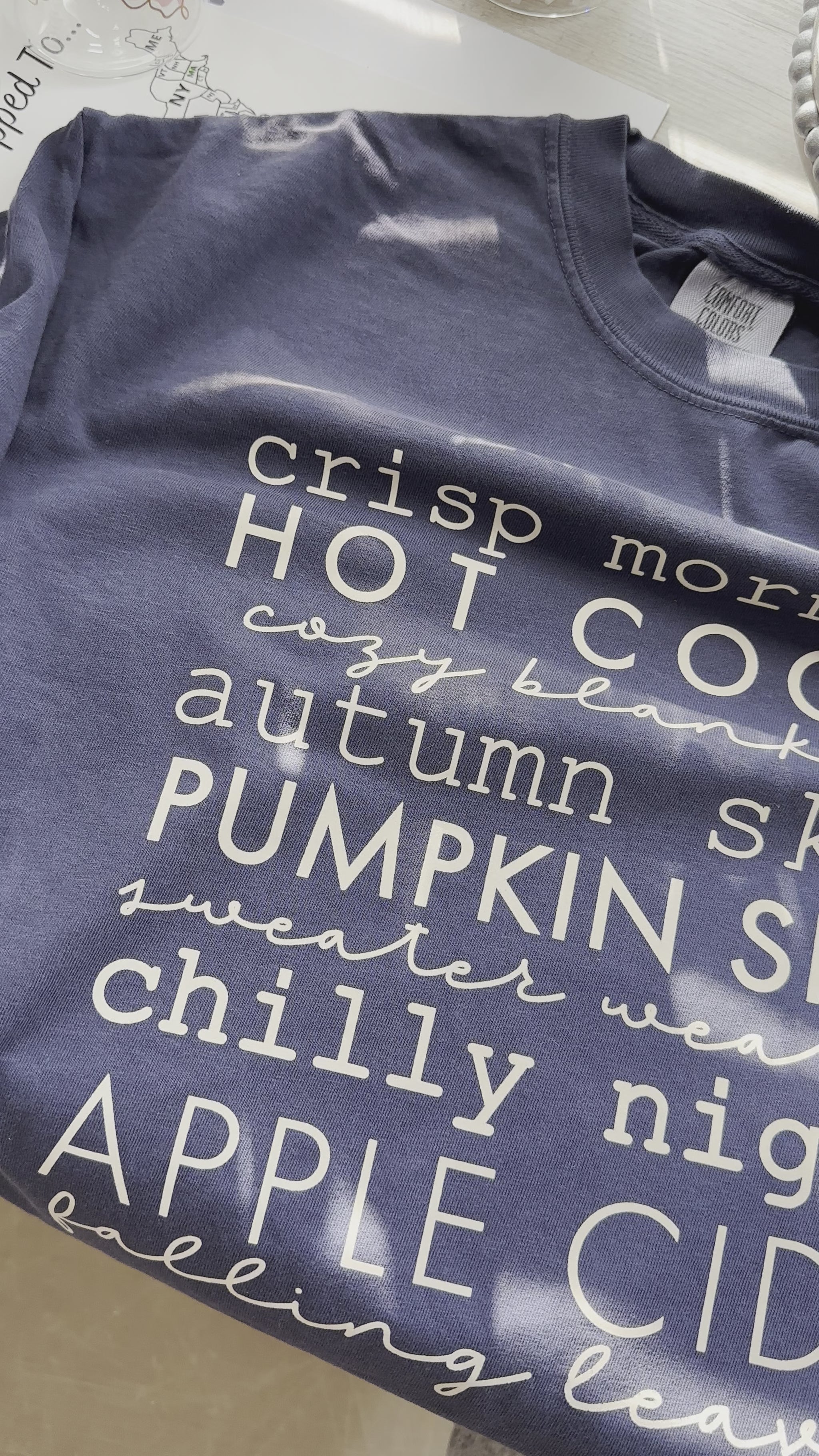 Embrace the essence of fall with our ‘Crisp Mornings’ comfort colors t-shirt. This cozy design captures the warmth of hot cocoa, the comfort of snug blankets, and the beauty of autumn skies. Get ready for the season with a touch of pumpkin spice, the chill of crisp nights, and the sweetness of apple cider. Adorned with falling leaves, this shirt is your perfect companion for all things autumn.