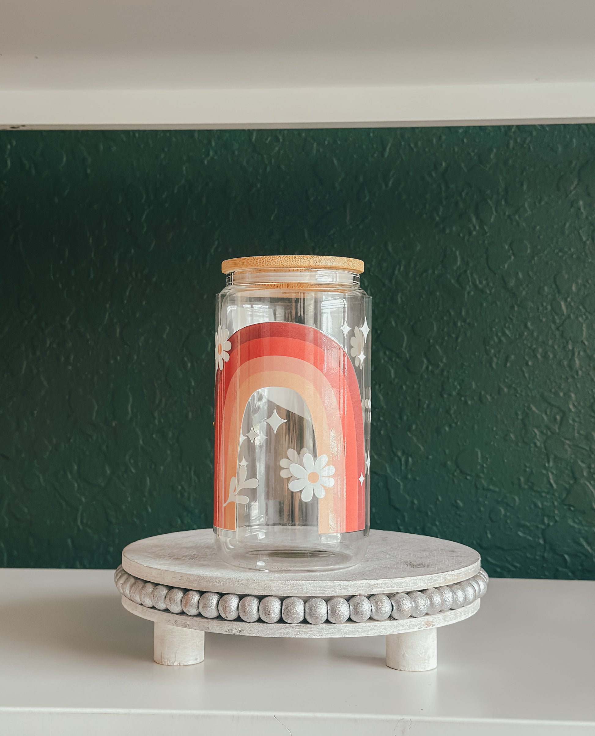 Introducing our charming 16oz Glass Cup with Bamboo Lid, featuring a beautiful rainbow with white flowers! Perfect for the eco-conscious drinker, this stylish and sustainable glass tumbler is designed to bring a touch of whimsy to your daily hydration routine.